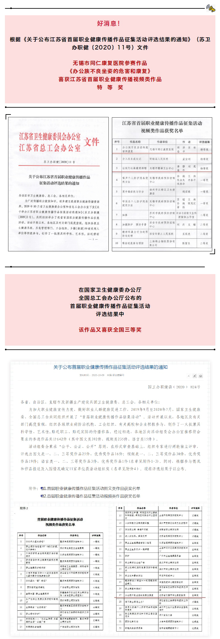 市同仁康復醫院職業健康科普作品喜獲全國、全省兩項大獎