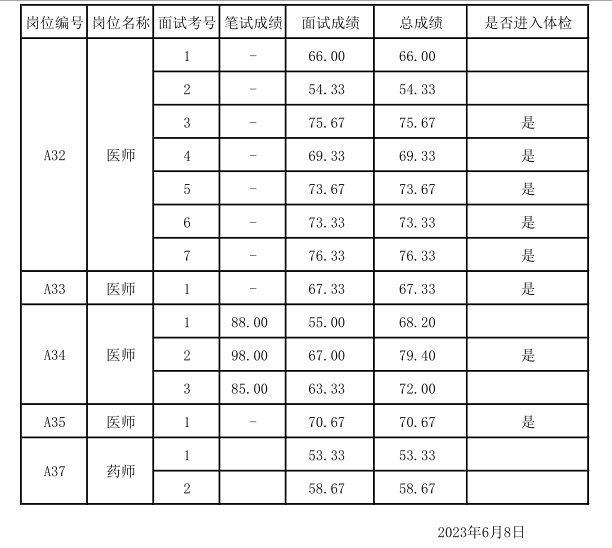 2023年無錫市衛生健康委直屬事業單位公開招聘其他類專技人才考核成績公示