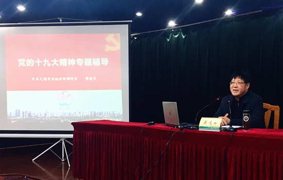 2個多小時的宣講中,周建軍全面透徹的講解、旁征博引的事例、精辟深刻的論述,引起了全體黨員干部及老同志的共鳴。“今天的報告結合實際,闡述了如何用習近平新時代中國特色社會主義思想武裝頭腦、指導實踐、推動工作,譜寫新時代中國特色社會主義無錫實踐新篇章,令我們受益匪淺,精神為之一振。”院離退休黨支部書記周炳漢表示。
