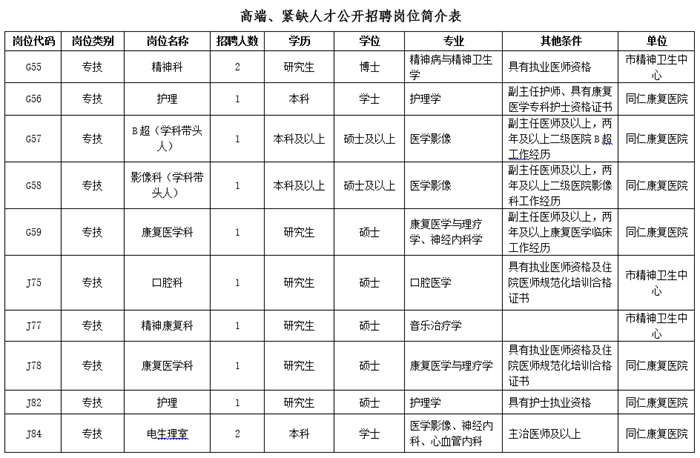 5.報(bào)名時(shí)間: 4月18日至5月2日(上午8:00-11:00,下午13:30-16:00,雙休、節(jié)假日除外)。考試時(shí)間另行通知,請(qǐng)關(guān)注無(wú)錫市精神衛(wèi)生中心官網(wǎng)(http://www.wuximhc.com/)以及無(wú)錫同仁康復(fù)醫(yī)院官網(wǎng)(http://m.hd072.com/)。