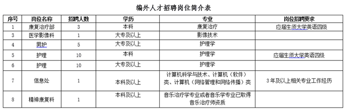6.報(bào)名地點(diǎn):無(wú)錫市錢(qián)榮路156號(hào),無(wú)錫市精神衛(wèi)生中心人事處(精神衛(wèi)生中心門(mén)診大樓五樓537號(hào)),聯(lián)系電話:0510-83013207。