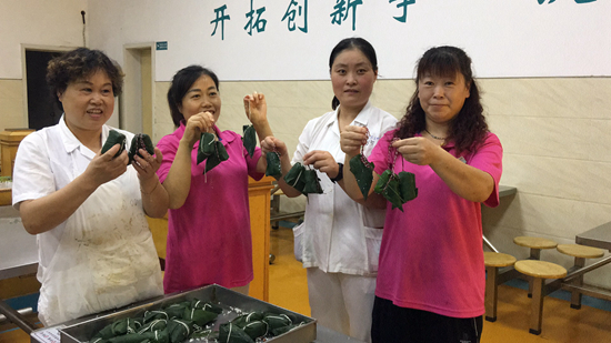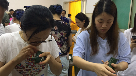 在歡聲笑語中,經(jīng)過半個(gè)小時(shí)的辛勤勞作,400多只漂亮的粽子在大家手中誕生了。大家包的粽子樣子五花八門,大小各異,三角形、菱形、長條形……看著那各式各樣的粽子,大家忍俊不禁,整個(gè)活動現(xiàn)場興趣盎然,暖意融融,始終洋溢著快樂的笑聲。比賽的冠軍當(dāng)然是屬于后勤分工會——食堂的各位大廚們。食堂將400多只粽子進(jìn)行統(tǒng)一烹煮,第二天早上職工們爭相購買粽子作早點(diǎn),大家品嘗著自己親手包的粽子,笑得更甜了。