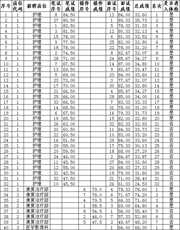2018年第四次編外職工公開招聘綜合測試成績公示