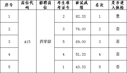 2019年其他類衛技人員公開招聘面試成績公示(5月15日)