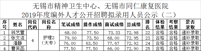 2019年度編外人才公開招聘擬錄用人員公示(一)