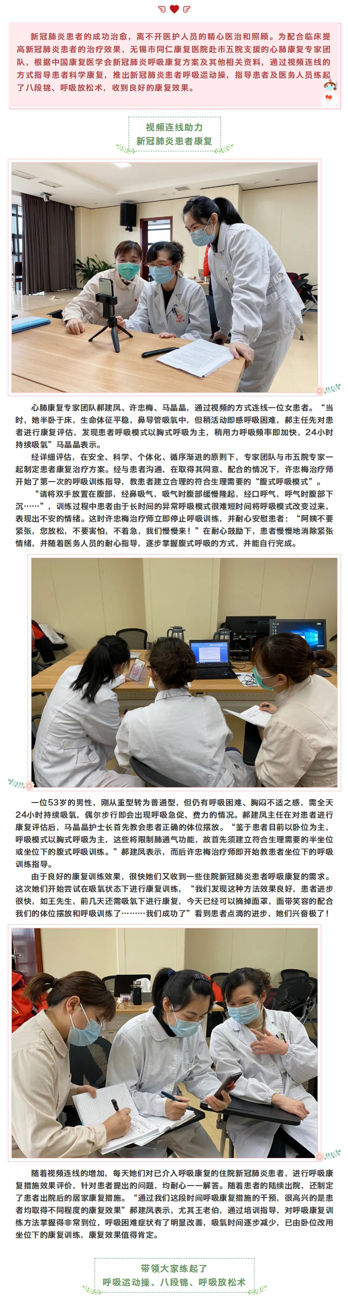 視頻連線、呼吸運動操、八段錦、呼吸放松術……她們赴五院花樣援助不間斷