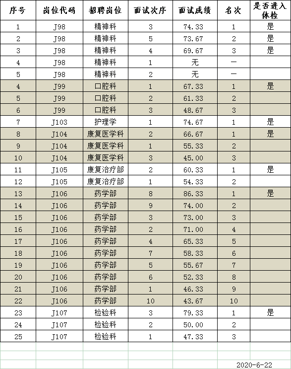 2020年緊缺性人才公開招聘第二批面試成績公示