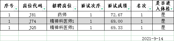 2021年緊缺性人才公開招聘第二批面試成績公示